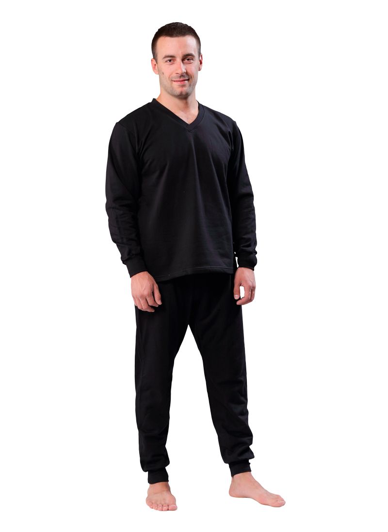 Куртка с кальсонами с начесом на изнаночной стороне. Трикотажные манжеты на рукавах и на брюках, анатомический шов, плоские швы.